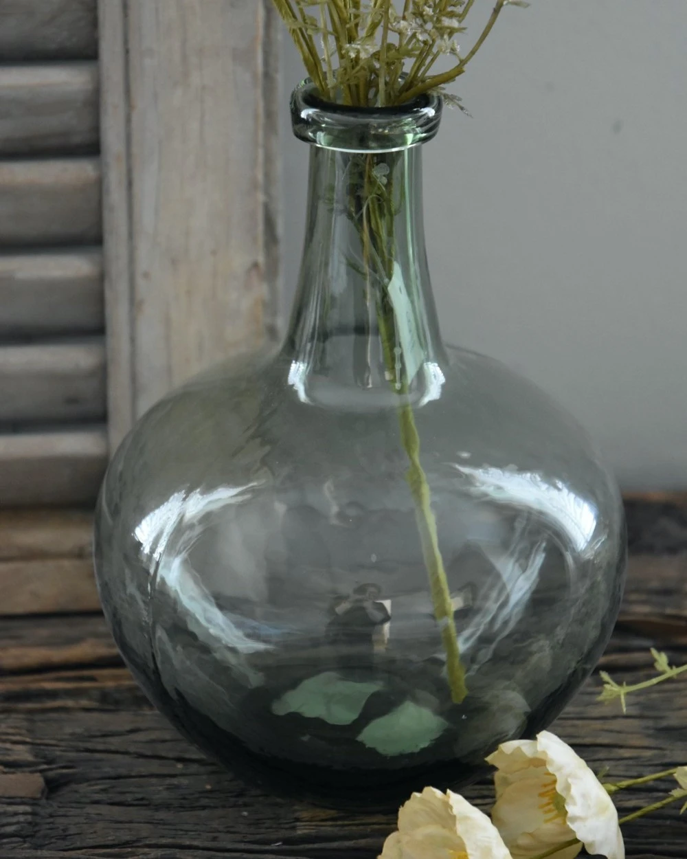 Bolle ballonvaas met groene gloed, IB Laursen per stuk. Deze mooie vaas is handgemaakt en heeft een transparante look met een groen accent. De mond geblazen fles vaas heeft een smalle hals met een omgevouwen rand. Doordat het een handgemaakt product is is iedere vaas uniek. De ballonvaas is ook in een iets grotere maat met net een ander model verkrijgbaar. Ze kunnen ook heel leuk gecombineerd worden en met een mooie tak gevuld, zoals op de afbeelding met een tak van IB Laursen of bv een mooie gras pluim.