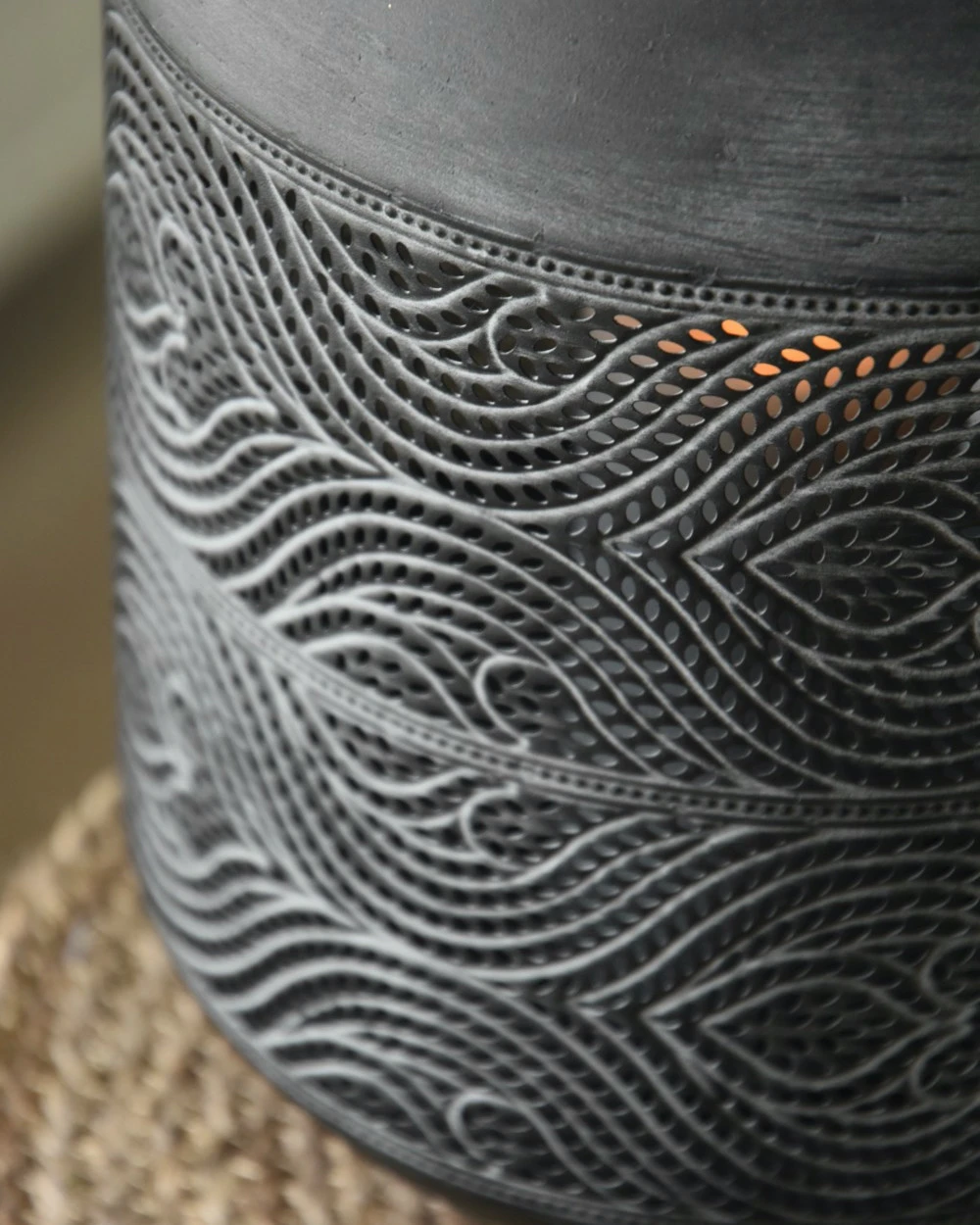 Groot Rond Metalen Windlicht Met Sierlijk Glooiend Gaatjes Patroon
