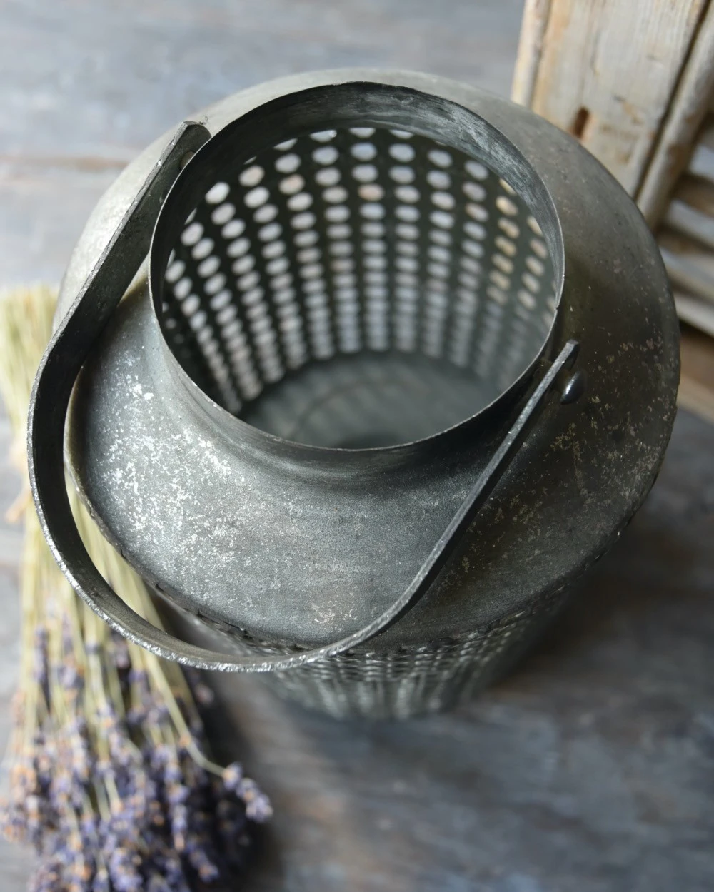 Hoge Lantaarn Van Metaal Met Gaatjes Patroon En Hengsel