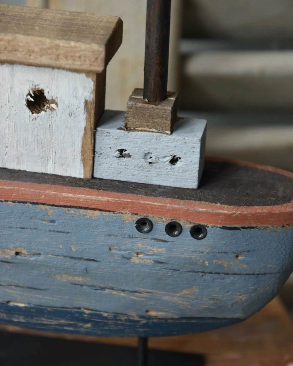 Houten Schip Op Metalen Standaard Handgeschilderd Blauw Groot, IB Laursen