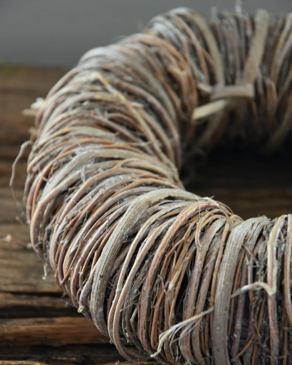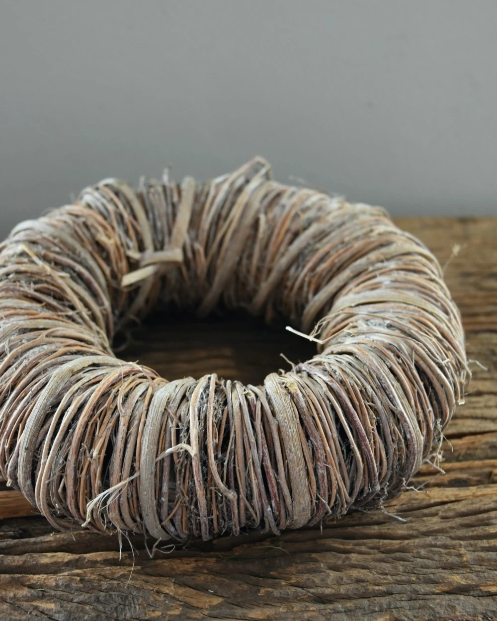 Krans van Mactan gras. Deze krans is gemaakt van het dikke Mactan grass. Door de manier omwikkelen van het Mactan heeft de krans deze vorm gekregen. De krans is van een natuurlijke kleur met een lichte iets white wash. U kunt de krans als decoratie ophangen, of bv op een mooie pot plaatsen met een plant erin voor een mooi effect.