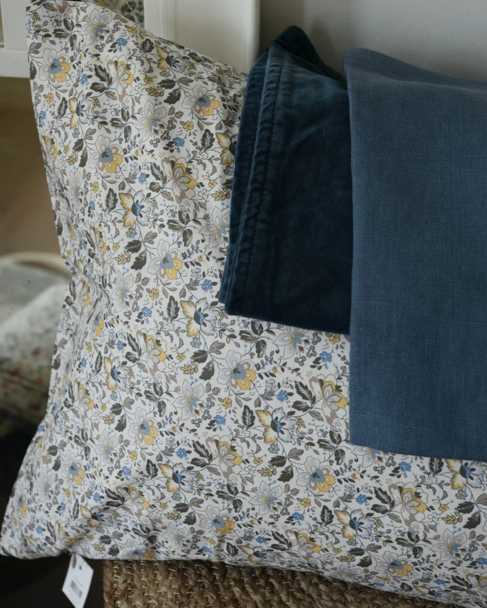 De gezellige print past goed bij: Velours kussen historical blue, kussenhoes rechthoekig historical blue(foto 2, 4, 5, 6, 8), velours ’thunder grey’ vierkante kussenhoes, linnenlook rechthoekige kussenhoes ‘Thunder grey (foto 5), vierkant velours kussen fog, linnenlook kussen hoes fog (foto 4, 5, 8)die overigens samen heel goed gecombineerd worden…