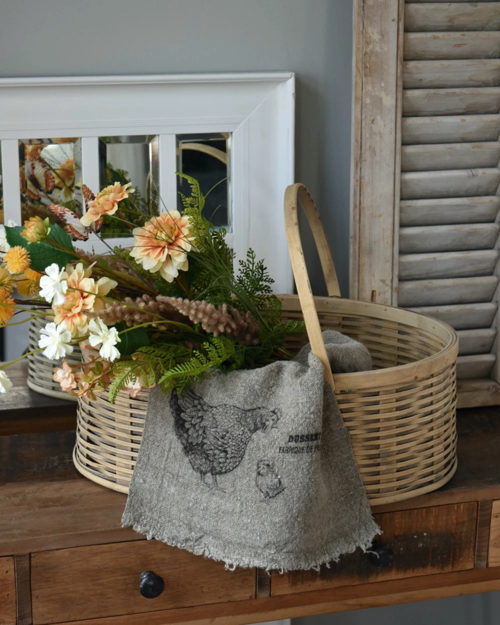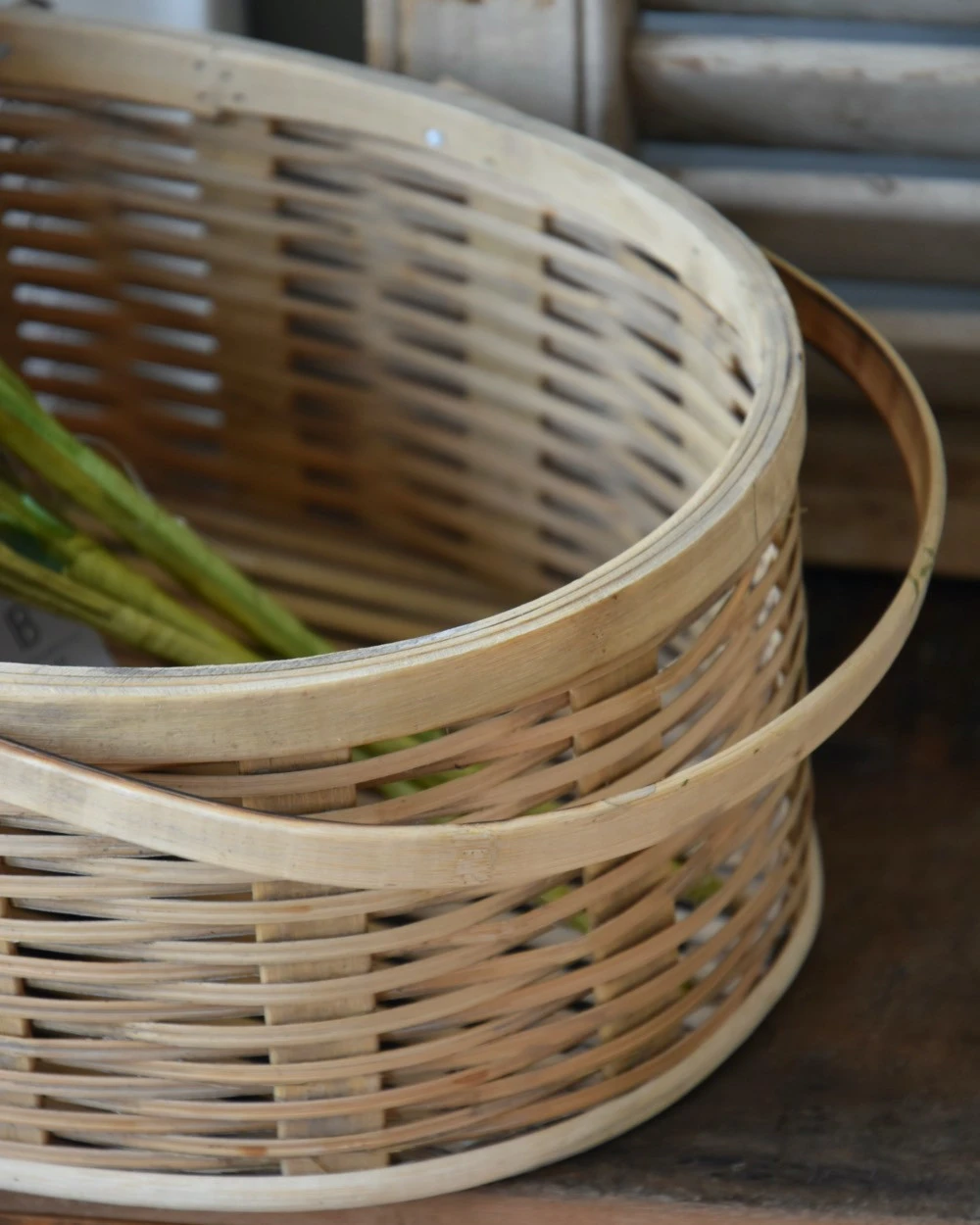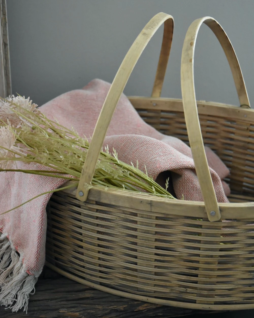 Mand met twee hendels L, IB Laursen. Deze prachtige ovale mand heeft een mooi vlechtwerk. Het vlechtwerk is van dun hout gemaakt, ook de bodem heeft een mooi patroon. Aan de mand zitten twee hengsels die in verschillende posities kunnen worden gezet. U kunt de mand leuk vullen met een kleed en bloemen bijvoorbeeld. Hij kan in iedere ruimte in huis worden gedecoreerd.