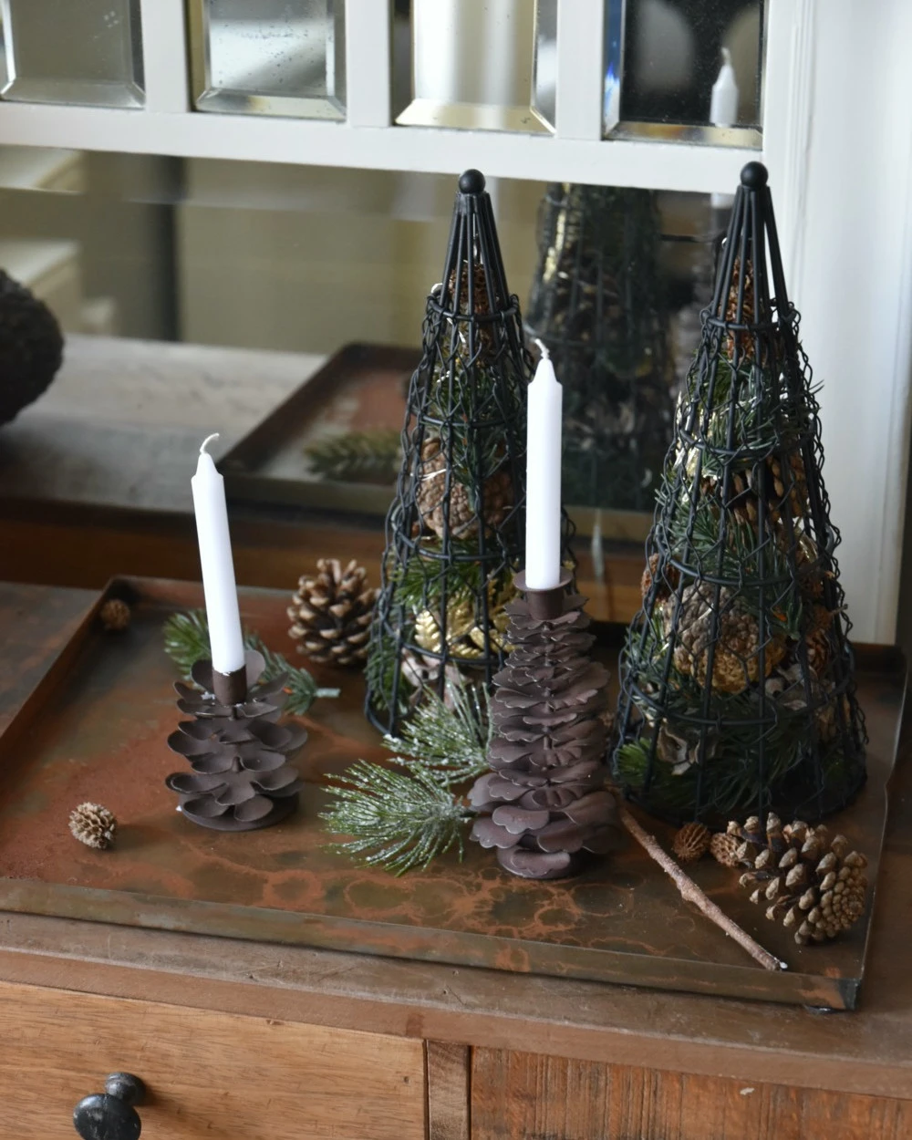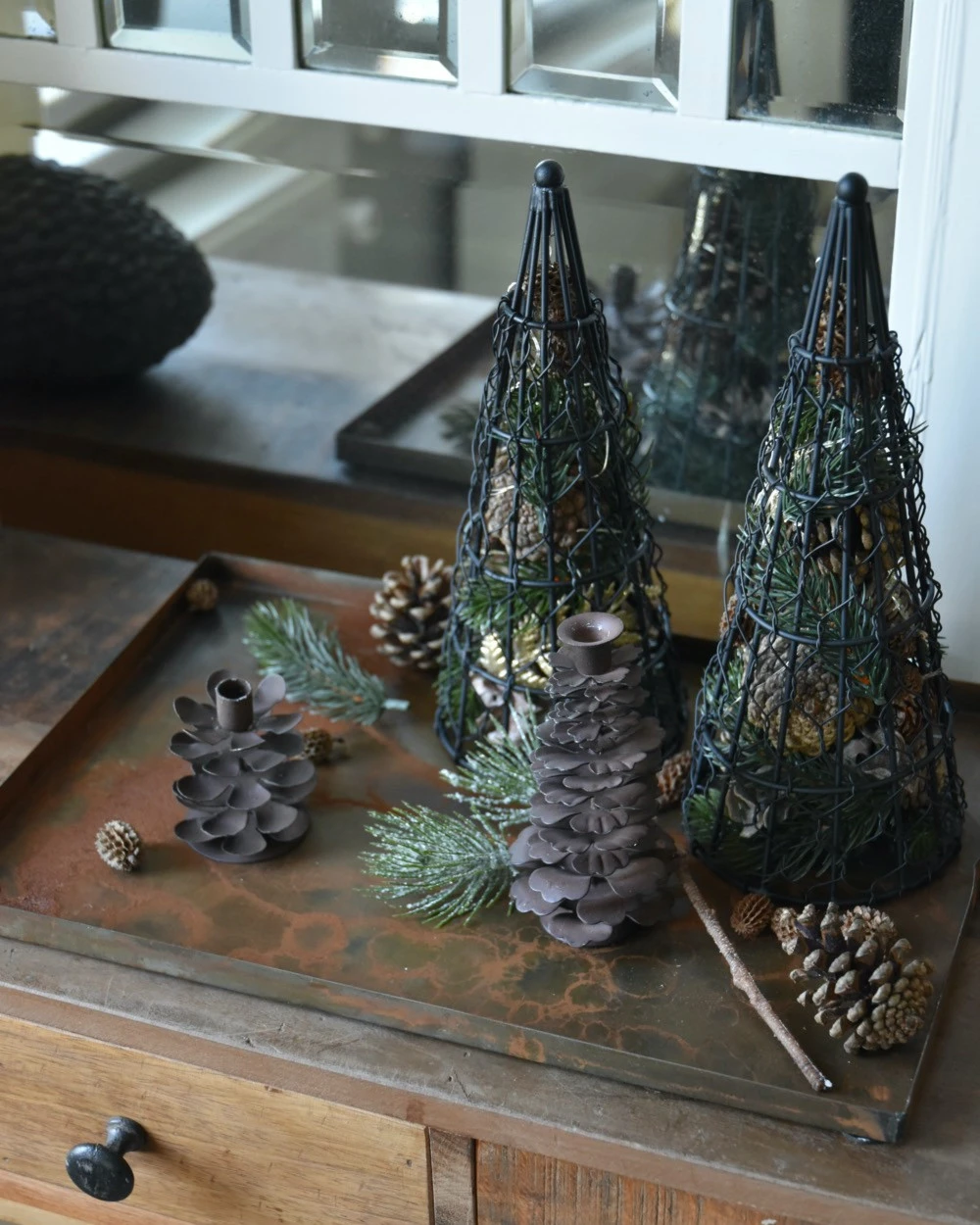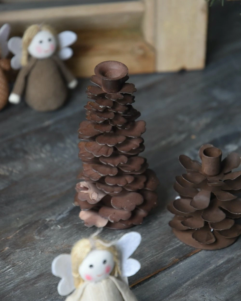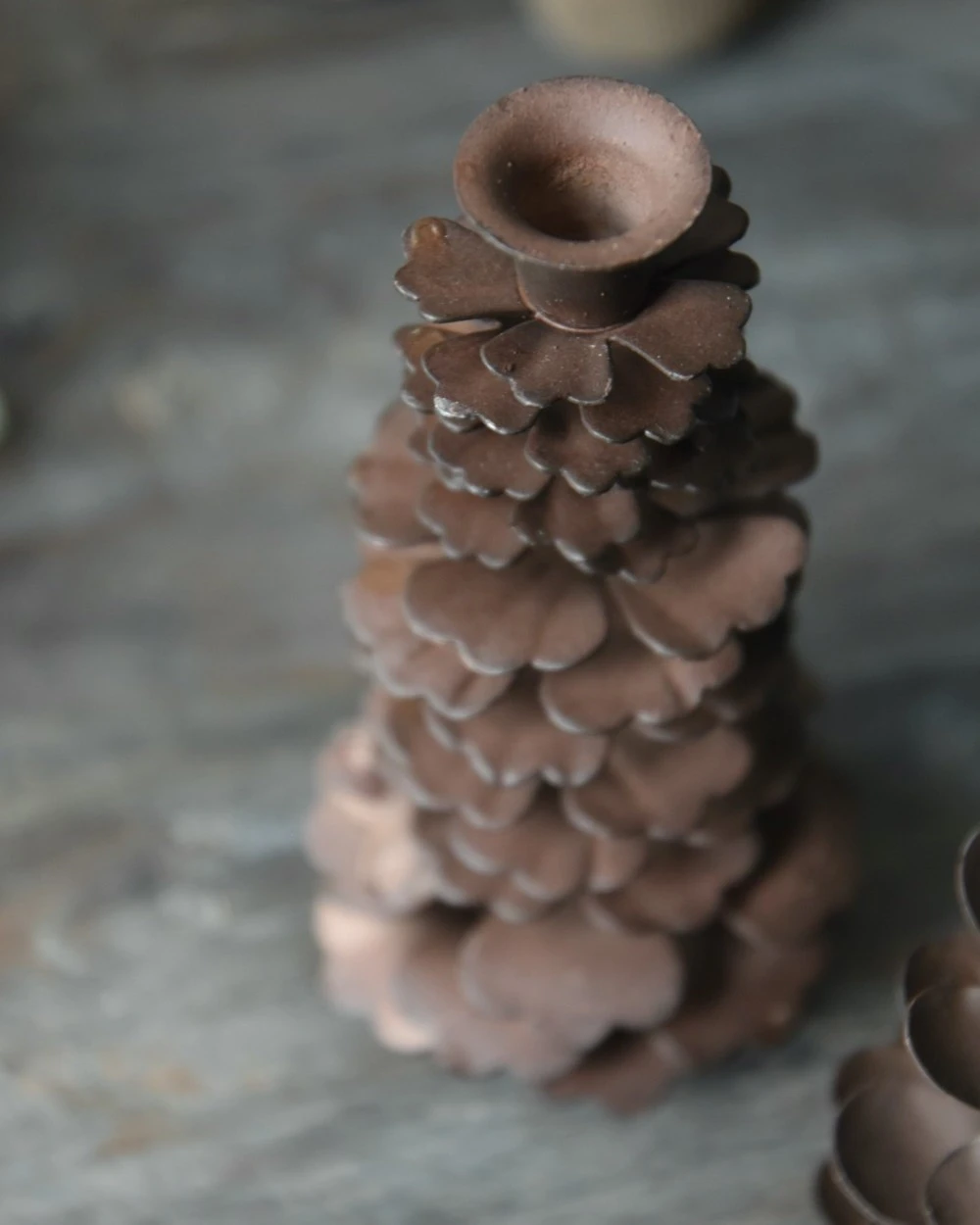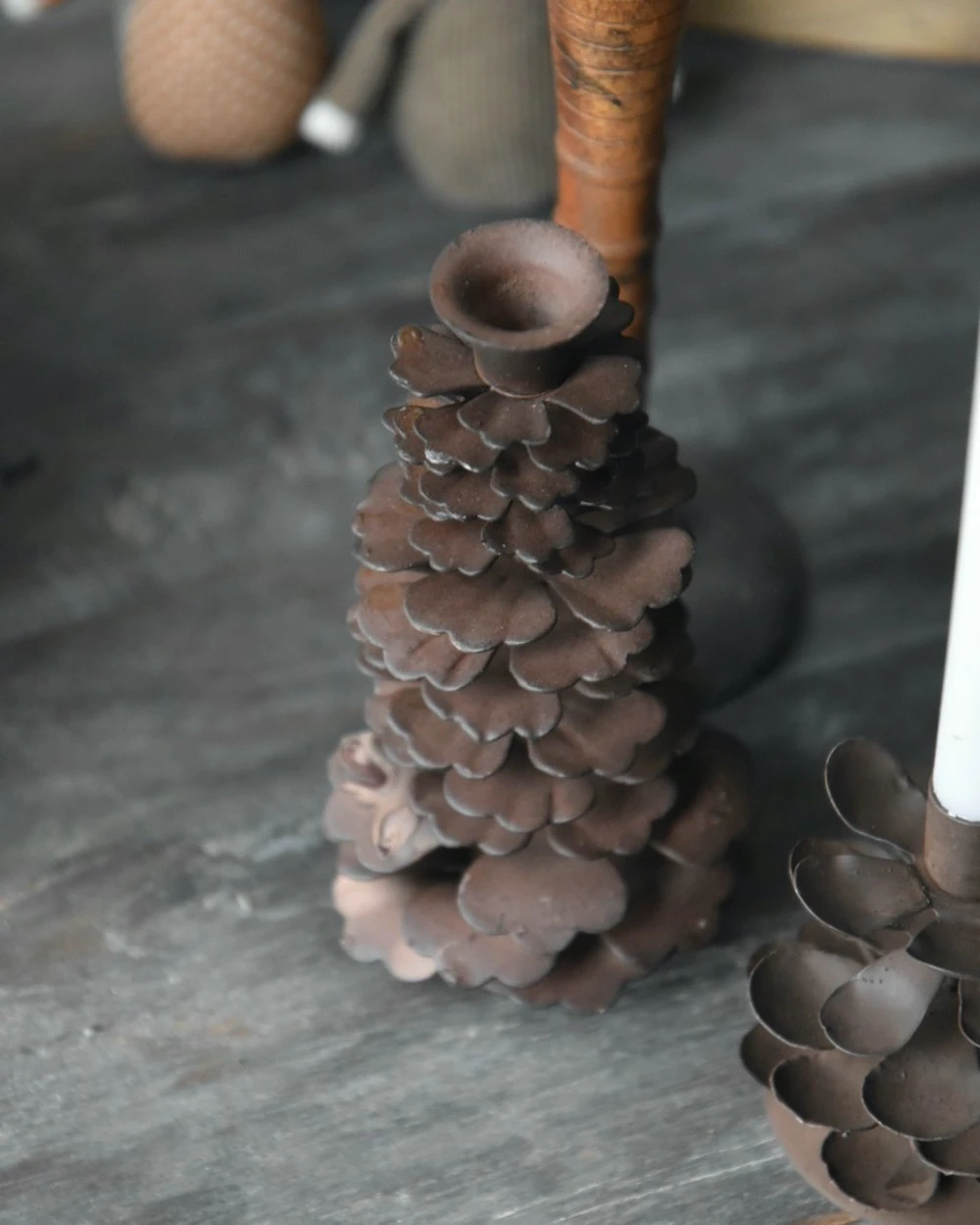 Metalen boom kandelaar, IB Laursen. Deze leuke kandelaar is van metaal gemaakt en in vorm van een boom. De boom is door takken gelaagd omhoog gewerkt met i de top een kaarseninzet. De mooie warme naturel tint past goed in het geheel en kan dan ook heel goed worden gecombineerd met natuurlijke materialen zoals hout en groen. In de kaarseninzet past een smalle tafelkaars. Uit deze serie zijn ook Dennenappels en rendieren verkrijgbaar.
