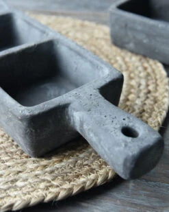 Vakkenbak Vintage Grijs Aardewerk Met Oor, 3 Vakken Brynxz