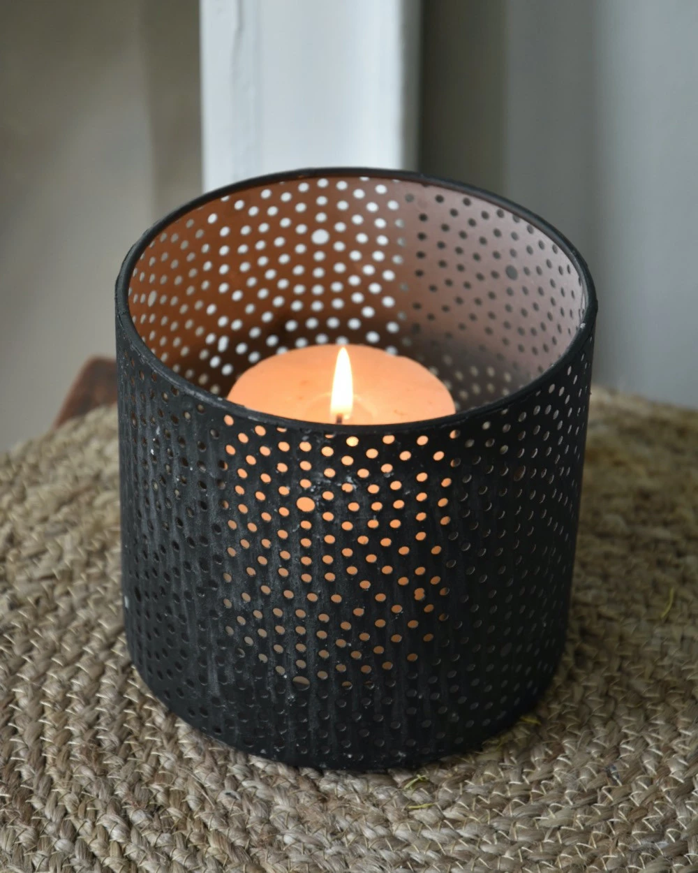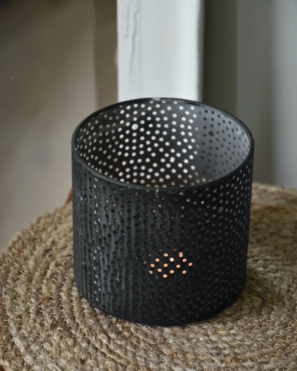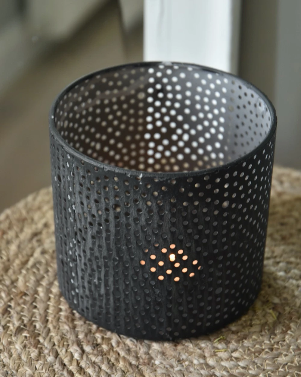 Windlicht Van Metaal Met Ronde Gaatjes Cirkel Patroon