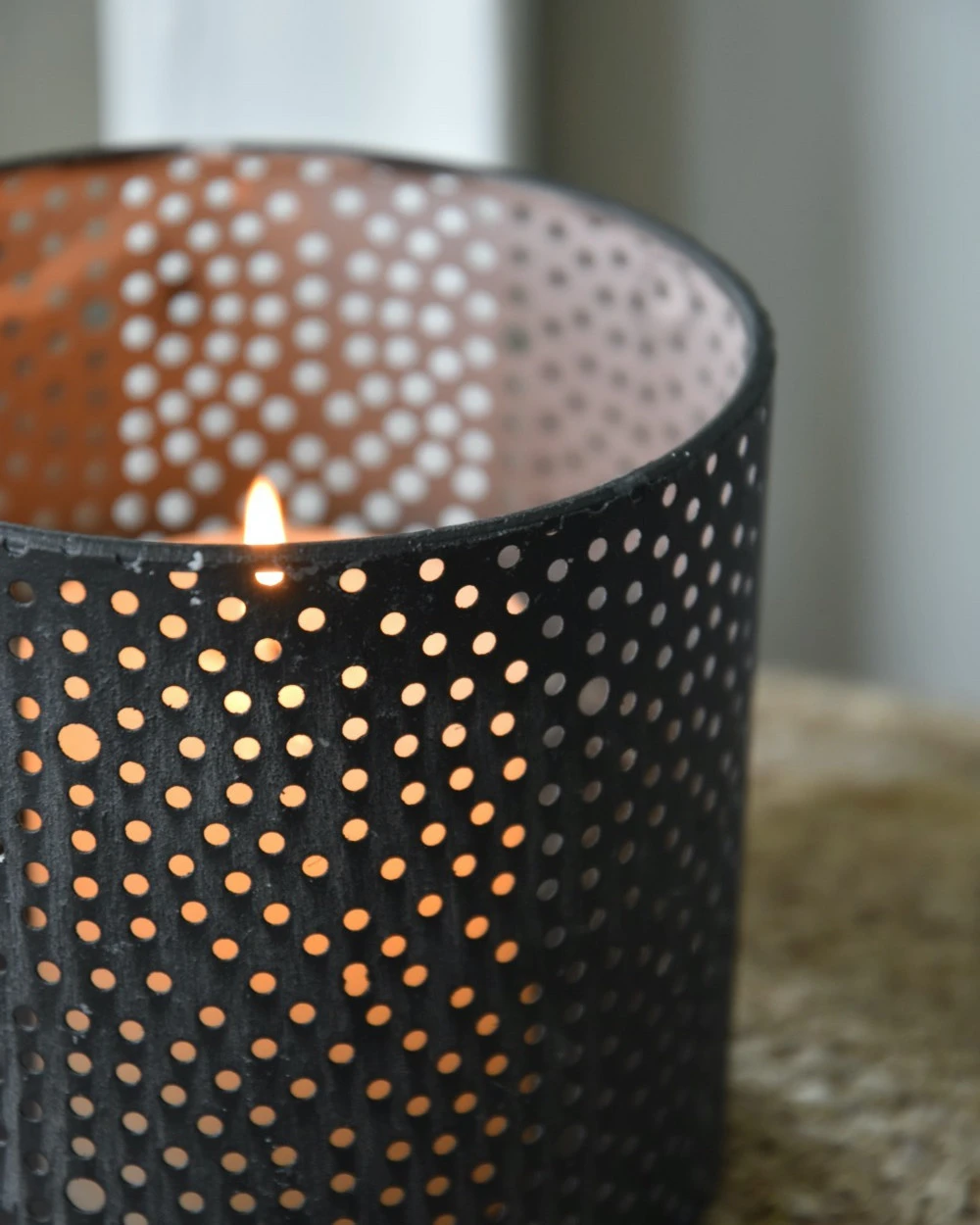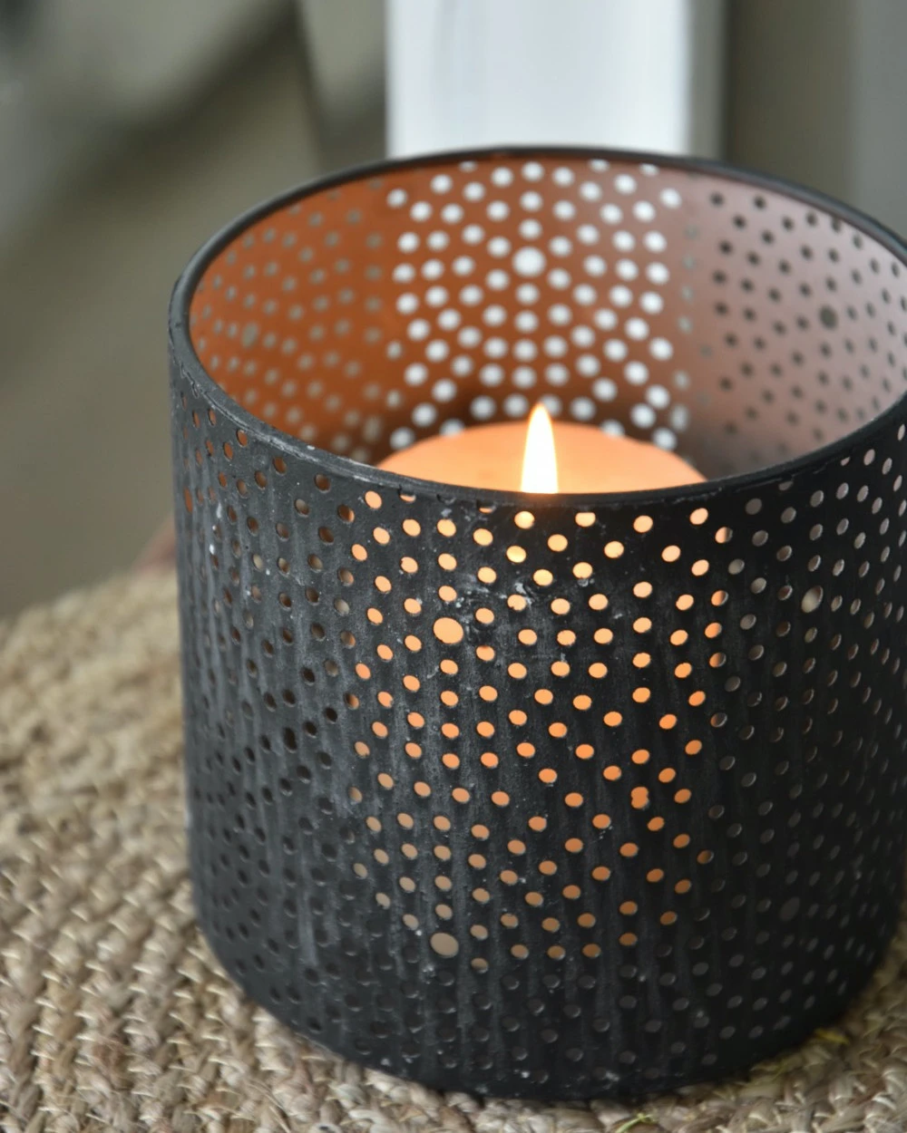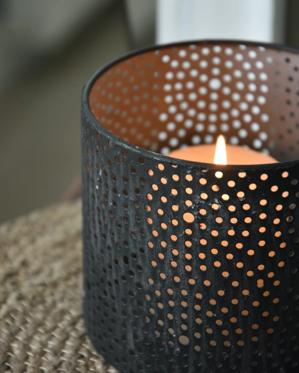 Windlicht Van Metaal Met Ronde Gaatjes Cirkel Patroon