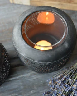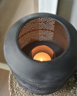 Groot Rond Metalen Windlicht Met Sierlijk Glooiend Gaatjes Patroon